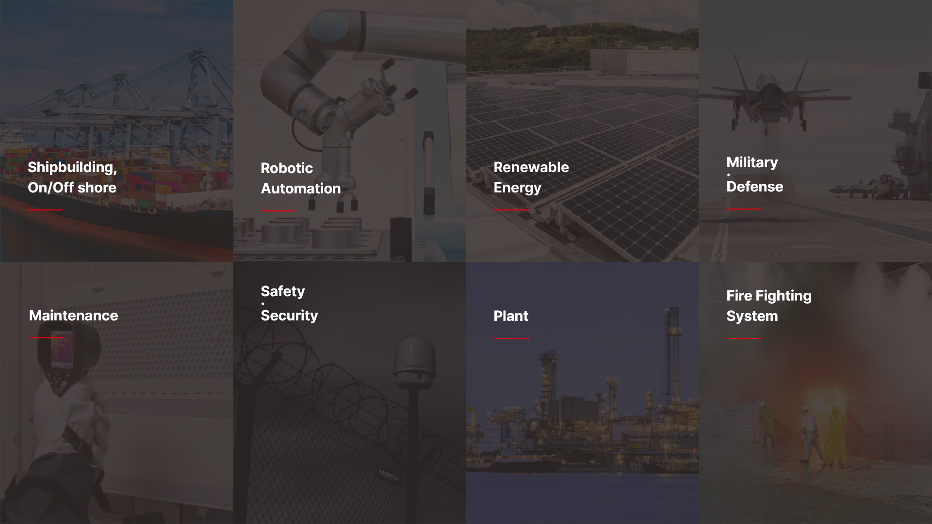 • NiDAR: Aircraft and drones, rubber boats, water monitoring, underwater monitoring and diver monitoring system with 360-degree monitoring function for sea application.